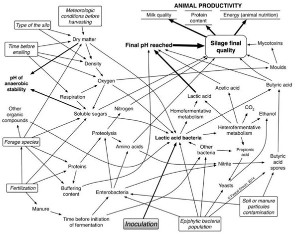 На 1 грамм зеленой массы может попасть более 1 миллиона различных микроорганизмов, и не все они являются желательными с точки зрения желательного брожения силоса. Так, например, в естественных условиях старт подкисления свежей массы дают энтеробактерии, в частности Е.Coli, которые являются условно патогенными микроорганизмами.