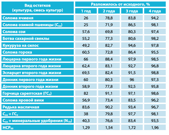 Отличным способом быстро минерализовать органику, является осеннее внесение азотных удобрений. Для эффективной деструкции важно соотношение между углеродом и азотом (С:N), оптимум которого — 20–30:1, тогда как у соломы зерновых оно возрастает до 70–90:1. Из-за такого широкого соотношения в процессе разложения происходит снижение нитратов и аммония в почве, то есть микробиологические процессы смещаются в сторону иммобилизации азота.